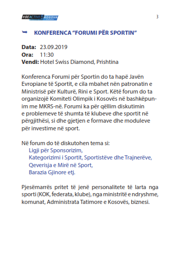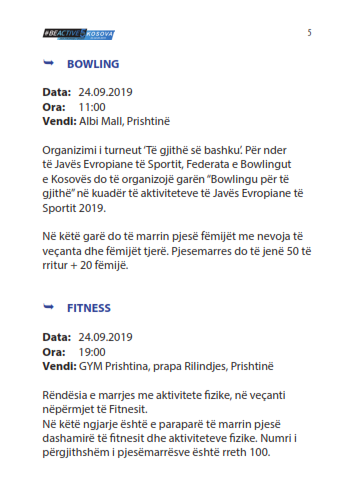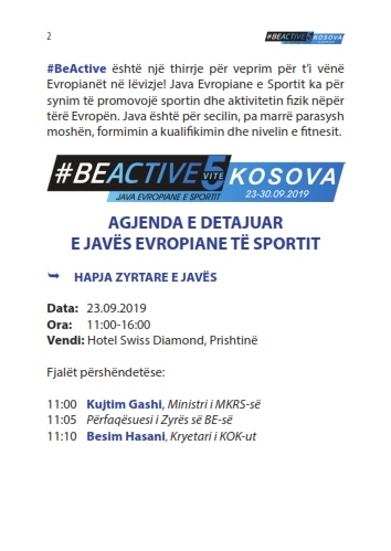 AGJENDA E JAVES EVROPIANE TE SPORTIT PER VITIN 2019